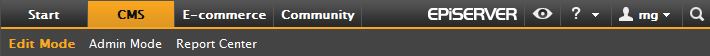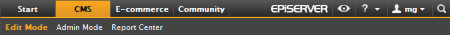 The global navigation helps users navigate different integrated products such as EPiServer CMS, EPiServer Community, and EPiServer Mail but also third party products as ImageVault or similar integrated modules which would like to expose their interfaces to the logged on user.