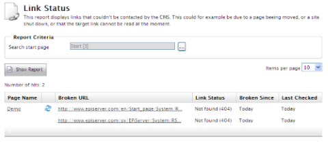 The result of the validation job is available as a report called Link Status report in the EPiServer CMS Report Center.