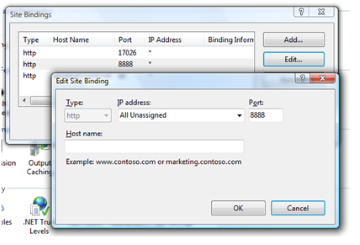 Add a specially designated (and restricted) port for access in the Internet Information Services (IIS) for the site (used for the UI folder in the step 1 above - port 8888 is used for uiUrl). Access to this port could then be restricted. (This step can be omitted if you are only wish to change the folders).