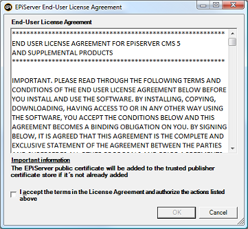 Next the EULA dialog will appear, you need to check the accept box and click OK to continue.