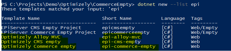 dotnet new --list epi