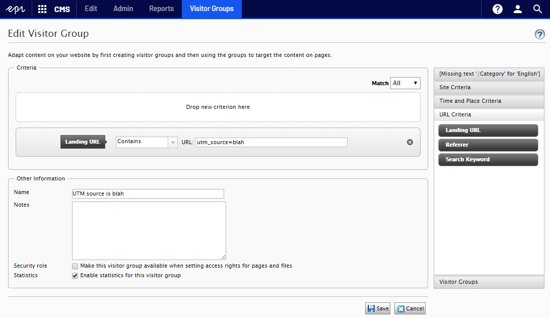 I am new to Episerver. I'd like to create a visitor group based on a specific utm parameter, is this possible?