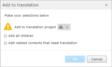 - You can combine these two options. If items included in the translation project are already part of another project, you are notified of this.